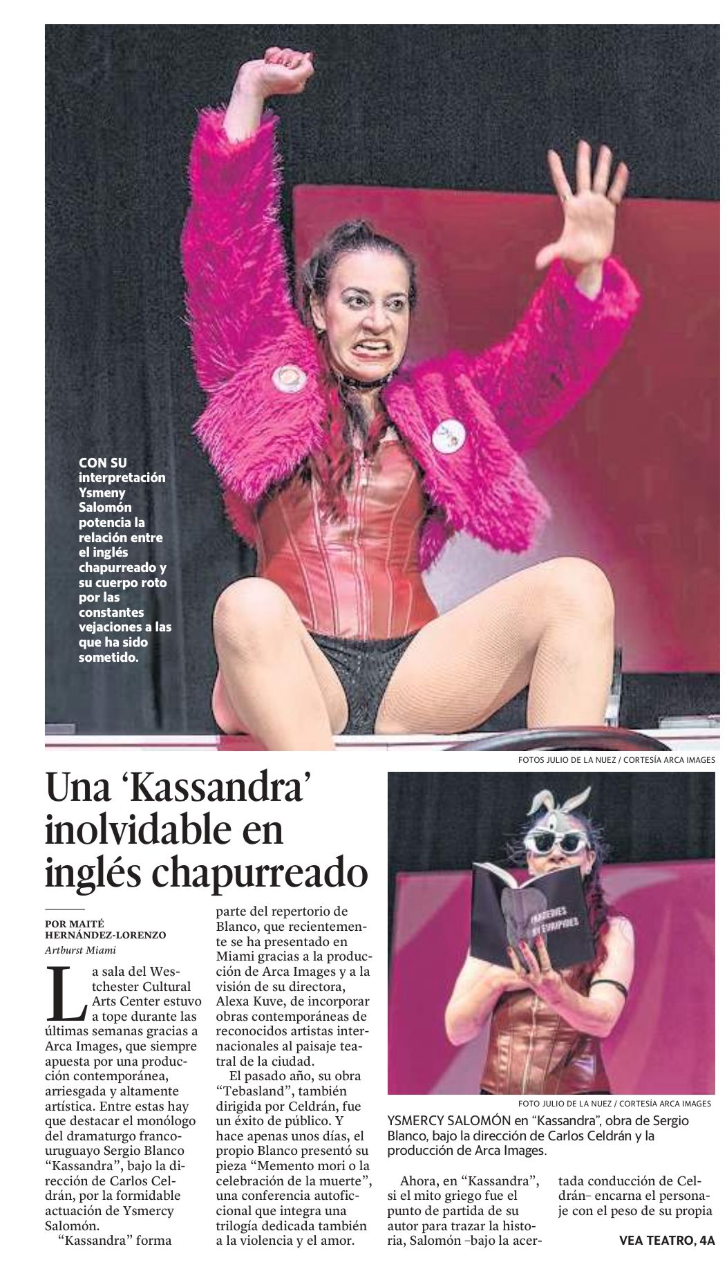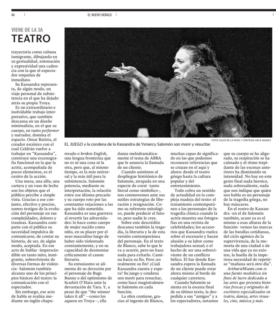 Kassandra is a unique fusion of classical Greek myth and contemporary reality that reimagines the legendary Greek prophetess Kassandra as a transgender immigrant struggling to survive on the margins of society. It will be directed by long-time Arca collaborator Carlos Celdrán, an acclaimed, Miami-based Cuban-Spanish director and playwright.